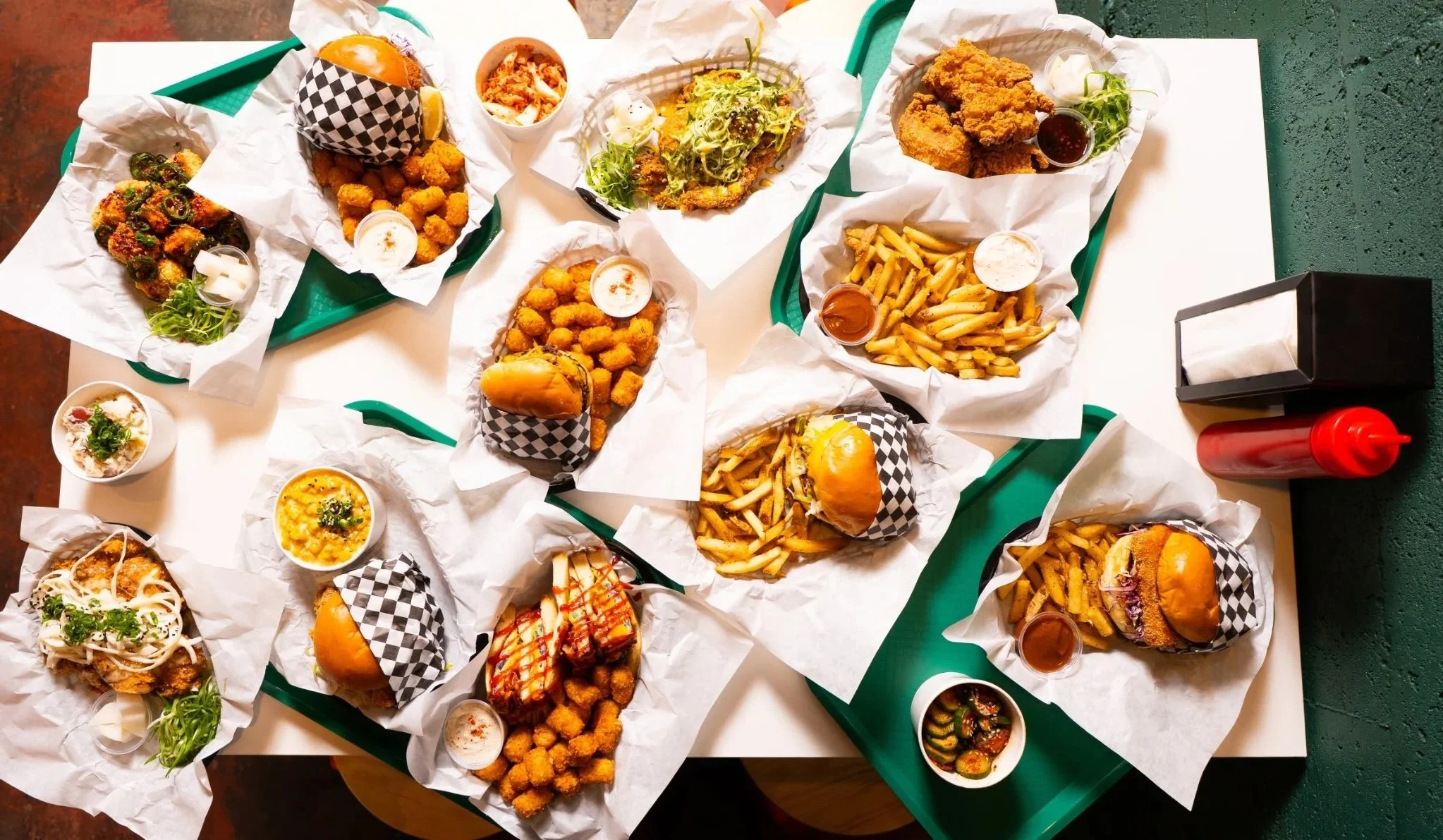 BBANG! is a fast-casual eatery inspired by the bold, craveable flavors of Korean street food and fast-food classics. Named after the Korean word for “bread,” BBANG specializes in handheld favorites—sandwiches and burgers—alongside Korean fried chicken, crispy tofu, and fresh, flavor-packed sides. The vibe is easygoing and modern, bringing the buzz of the street into a welcoming space made for everyday hangs. Pair your meal with a drink from our neighboring bar, Holy Ghost, and settle in.